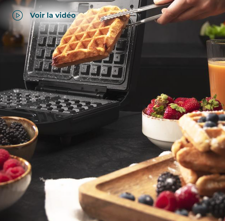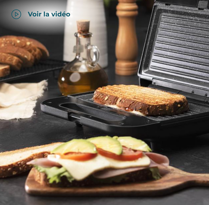 Grâce à sa puissance, vous réalisez aussi bien des sandwichs et des gaufres que des steaks, hamburgers ou du pain grillé. Les plaques répartissent la chaleur de façon uniforme pour une cuisson homogène et profitent d’un préchauffage rapide, avant et pendant la cuisson. Compatibles lave-vaisselle, elles offrent une capacité pour deux tranches de pain. Le revêtement est écologique et sûr, conforme aux normes alimentaires en vigueur.