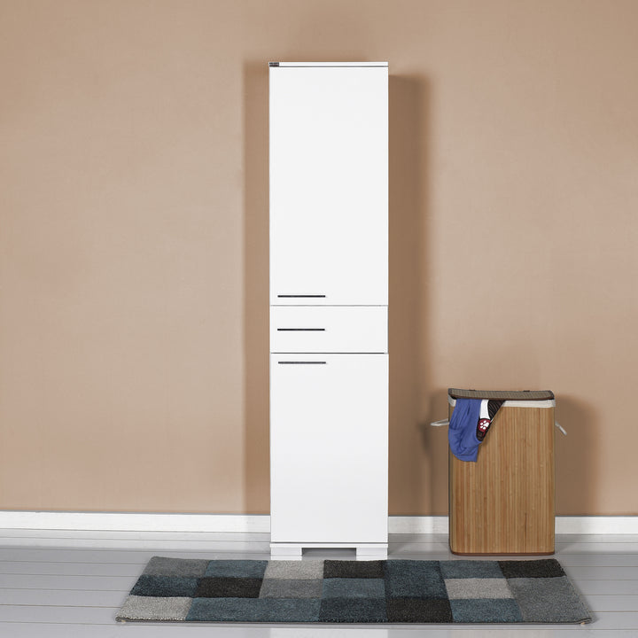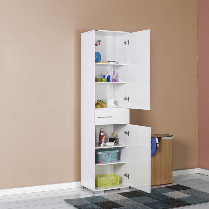 Blanc brillant laqué 4 étagères mobiles 1 étagère fixe Poignée chromée Armoire polyvalente; salle de bain, cuisine, bureau, cave, porte, balcon etc.