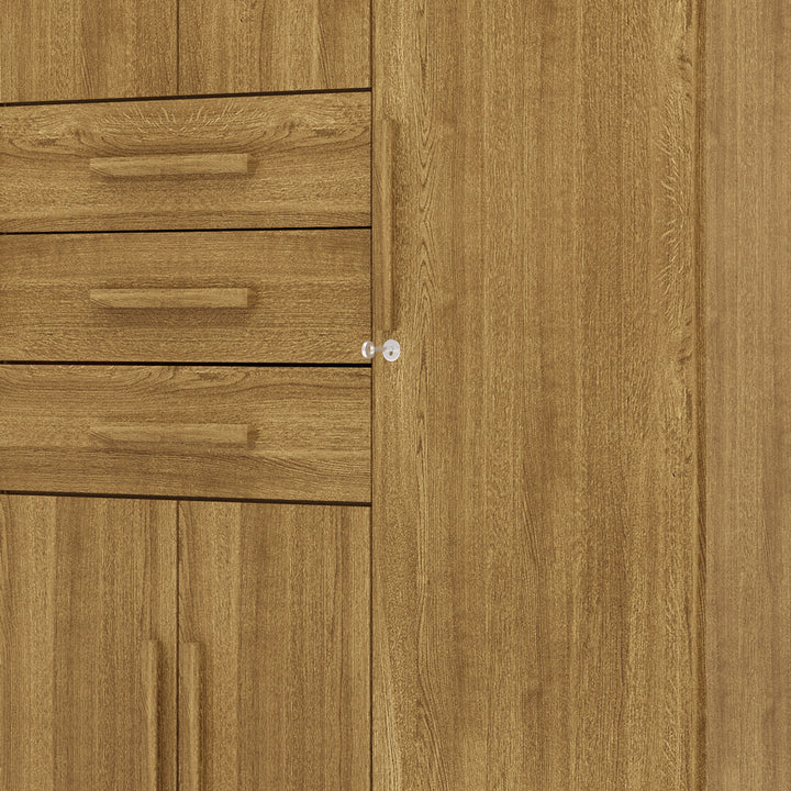 Alliant design et durabilité, cette armoire est équipée d’un profil et d’une barre de penderie en aluminium, de pieds en bois massif et de coulisses en métal pour une ouverture fluide. L’étagère réglable vous permet d’organiser l’intérieur selon vos besoins. Les portes, munies de serrures, sécurisent vos effets, tandis que les poignées en MDF revêtues offrent une prise en main agréable.