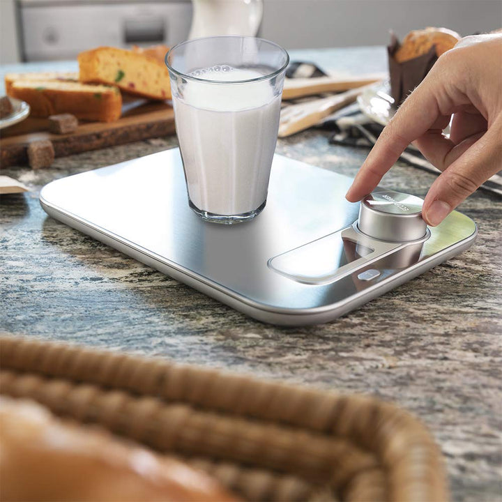La Cook Control 10200 EcoPower intègre la fonction Tare pour peser successivement plusieurs ingrédients dans le même récipient. Elle permet également de mesurer solides et liquides d’une simple pression sur un bouton et de passer instantanément des grammes aux livres pour s’adapter à toutes vos recettes. Enfin, elle vous avertit lorsque la batterie est faible, afin que vous gardiez en permanence le contrôle de votre balance.