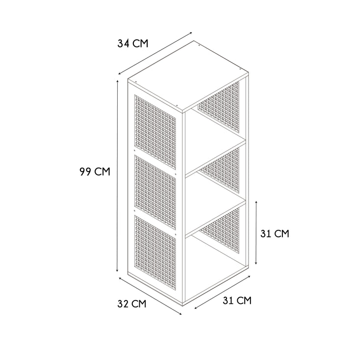 Bibliothèque 3 case BALI / HD0245 Hauteur (en cm) 32 Longueur (en cm) 34 Profondeur (en cm) 99