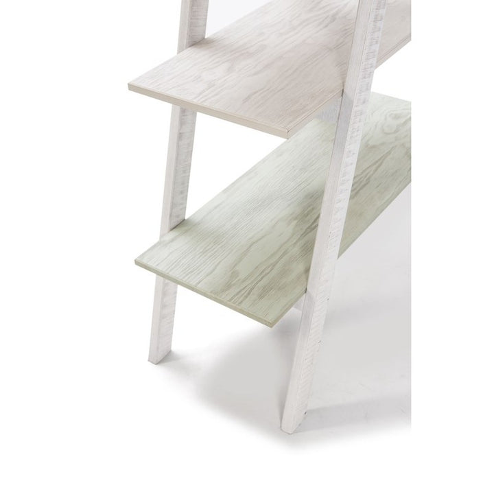 Sa structure combine du pin massif et du MDF pour une belle solidité, avec des plateaux en MDF aux coloris blanc et gris. Dimensions: L80 x P35 x H146 cm.