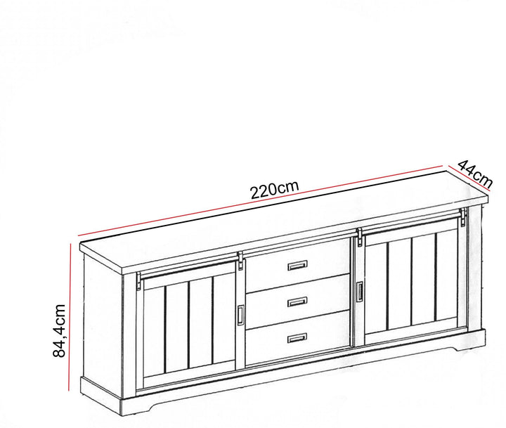 Buffet GEORGETOWN Fabriqué en Indonésie Structure MDF de très bonne qualité 220x44x84,4cm