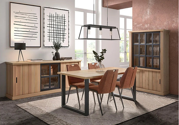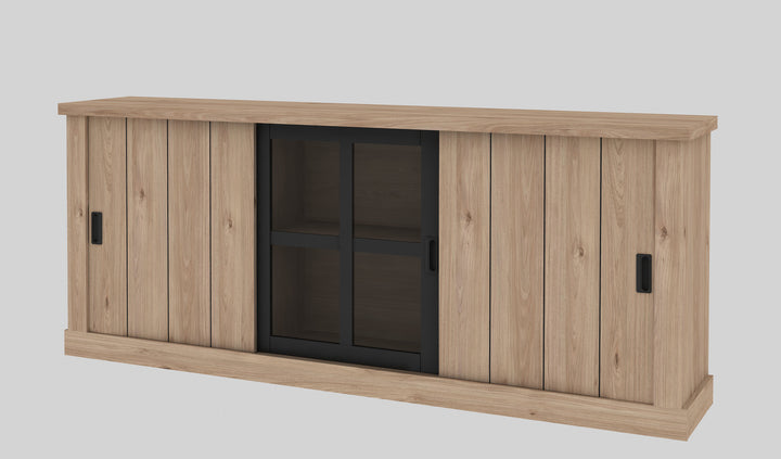 Buffet JUMBO Structure en panneau de particules, MDF recouvert de papier coloris oak jackson / noir. Dimensions : 220x44xH90cm