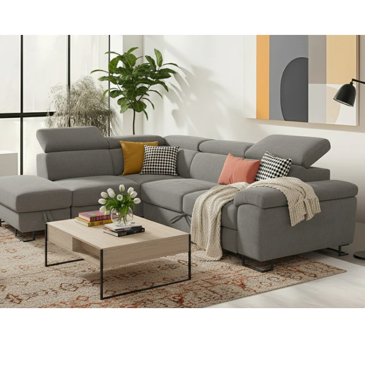 Le Canapé d’angle gauche SF-757LHFGREY transformable en lit avec coffre de rangement est un choix idéal pour allier confort, fonctionnalité et design contemporain. Revêtu d’un tissu épais de haute qualité, il offre une excellente résistance à l’usure tout en garantissant une assise agréable au quotidien. Sa couleur grise, sobre et intemporelle, s’intègre facilement à tous les styles de décoration intérieure. Grâce à son mécanisme de transformation simple et pratique, ce canapé se convertit rapidement en lit, offrant un couchage confortable pour vos invités. Son coffre de rangement spacieux permet d’optimiser l’espace en accueillant coussins, couvertures ou linge de lit. Avec ses dimensions généreuses de 276 × 212 × 79 cm, il propose une large surface d’assise idéale pour les moments de détente en famille ou entre amis. Son angle gauche facilite l’agencement du salon selon vos besoins. Livré en 3 colis, il est facile à transporter et à installer.