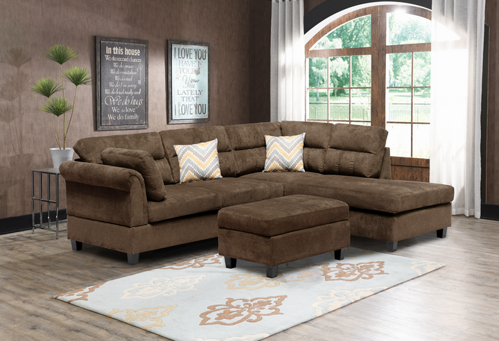 Canape d’angles avec ottoman marron / KM107BROWN 262 x 205 x 94 cM