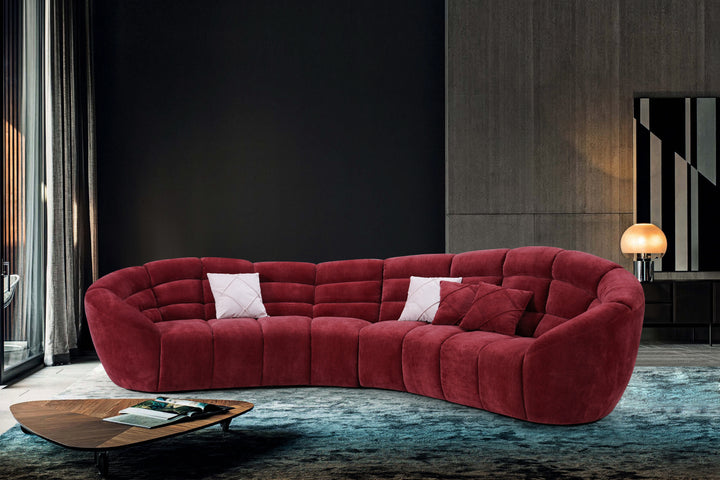 Ce canapé associe design et confort grâce à sa structure en panneau de particules et à une assise en mousse de polyuréthane, le tout revêtu d’un tissu microfibre coloris bordeaux pour une touche élégante.