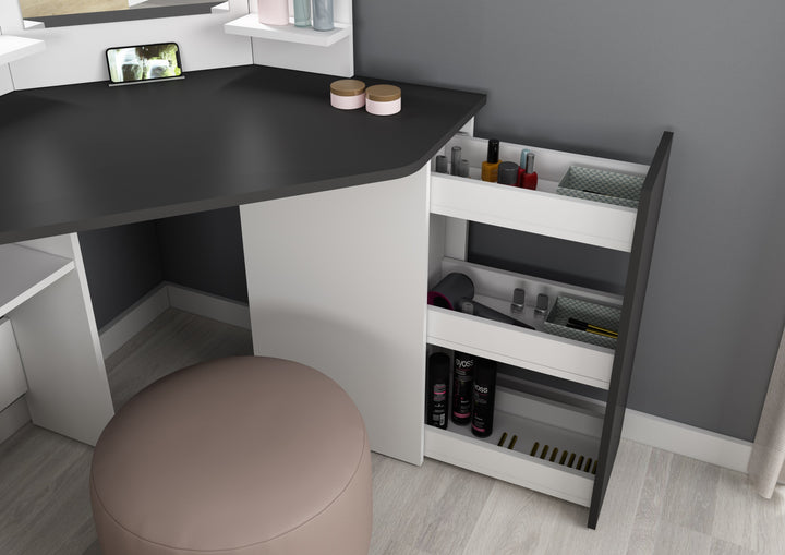 Le tabouret n’est pas inclus, vous pouvez ainsi sélectionner l’assise de votre choix pour compléter votre espace beauté.