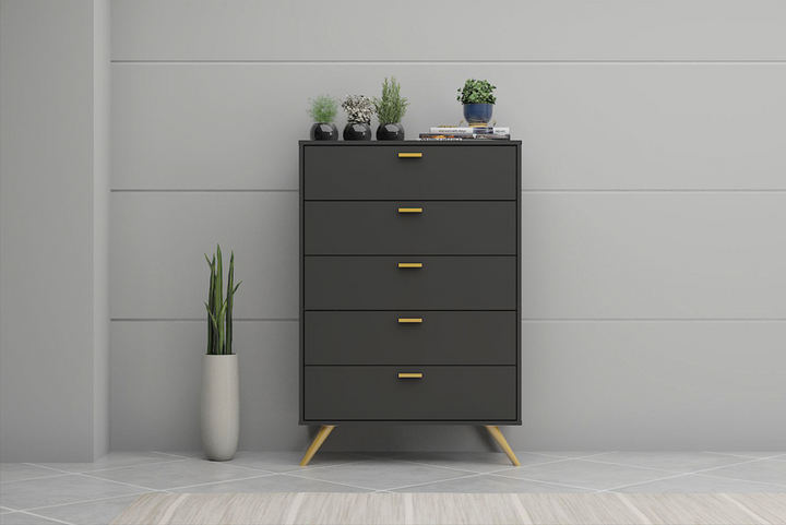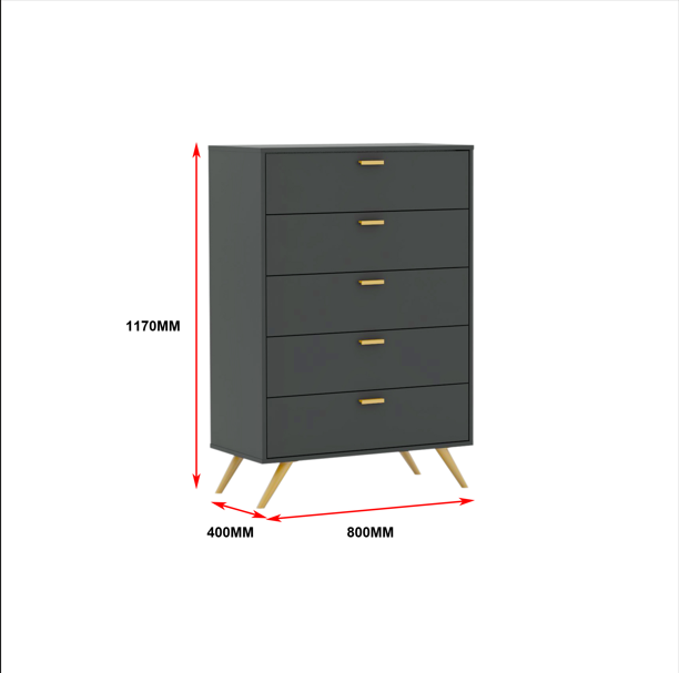 Conçue en panneau de particules mélaminé, cette commode est habillée d’un papier décor anthracite / noyer pour un style chaleureux et contemporain. Dimensions : L80 x P40 x H117 cm, idéale pour offrir un bel espace de rangement sans encombrer votre intérieur.