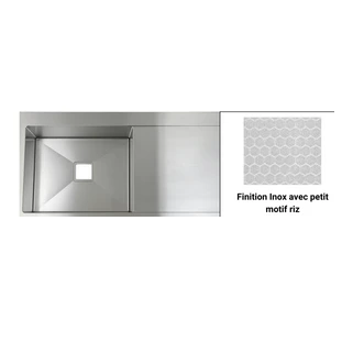Caractéristiques : 2 trous pour robinet, sortie d’évacuation circulaire, trop-plein en direction du panneau arrière
