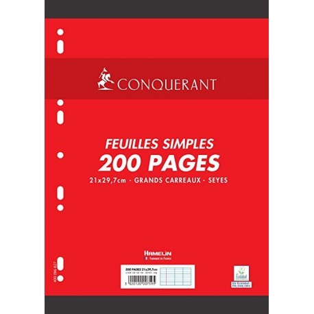 Le paquet de feuilles perforées CONQUERANT 7 au format A4 (21 x 29,7 cm) répond parfaitement aux besoins des élèves, étudiants et professionnels exigeants. Avec 200 pages à réglure Seyès (grands carreaux), il assure une écriture soignée et bien structurée, idéale pour les cours, exercices ou prises de notes détaillées. Son papier blanc 90g de haute qualité offre une excellente opacité et résiste aux bavures, même avec l’encre liquide. Les perforations standard facilitent l’archivage dans classeurs et chemises à anneaux pour un rangement pratique et organisé. Emballé sous film protecteur, il garantit des feuilles toujours propres et prêtes à l’emploi. Un indispensable des fournitures scolaires ou de bureau pour travailler efficacement et durablement.
