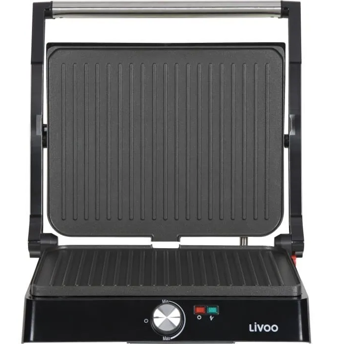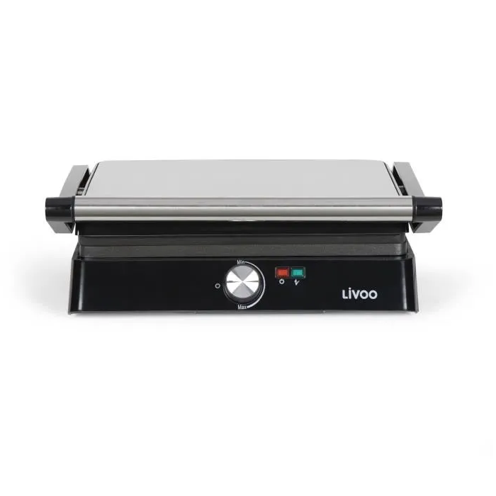 Le grill électrique LIVOO DOC223 est un appareil de cuisson polyvalent idéal pour griller viandes, paninis et légumes au quotidien. Sa puissance de 2000 W assure une montée en température rapide pour des cuissons uniformes et savoureuses. Il dispose de deux plaques rainurées antiadhésives, d’une surface de cuisson généreuse (~29 × 23 cm) et d’un thermostat réglable jusqu’à 230 °C, permettant d’ajuster la chaleur selon vos recettes. Grâce à son ouverture à 180°, il se transforme facilement en plancha, offrant une plus grande surface de cuisson pour saisir différents aliments. La charnière ajustable s’adapte à l’épaisseur des sandwichs ou morceaux de viande, tandis que les témoins lumineux indiquent l’état de chauffe. Compact et pratique, ce grill s’intègre parfaitement dans une cuisine domestique pour préparer des repas variés, simples et rapides.