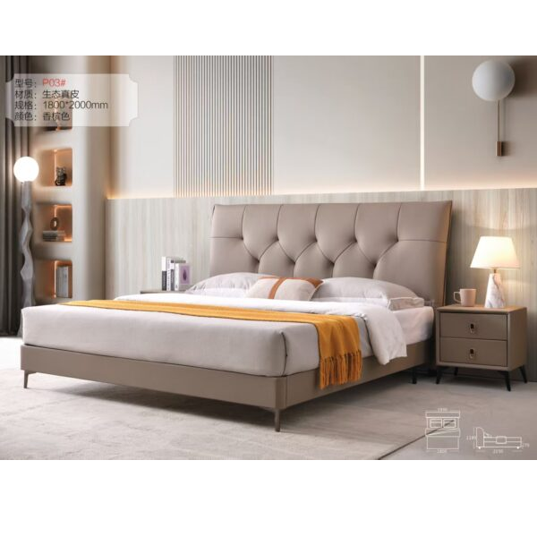 Lit 160×200 en cuir gris, design contemporain. Cadre élégant et sommier inclus pour un couchage confortable et raffiné.