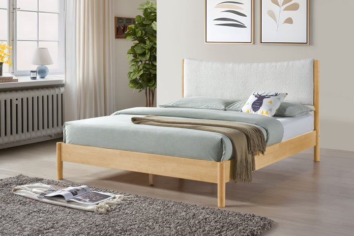 Alliant robustesse et style, ce lit en bois d’être massif au coloris clair s’accompagne d’une tête de lit habillée d’un tissu microfibre pour une touche douce et contemporaine. Vendu avec sommier, sans matelas, il vous laisse la liberté de choisir le confort qui vous convient. Dimensions totales : 168 x 211 x H 100 cm.