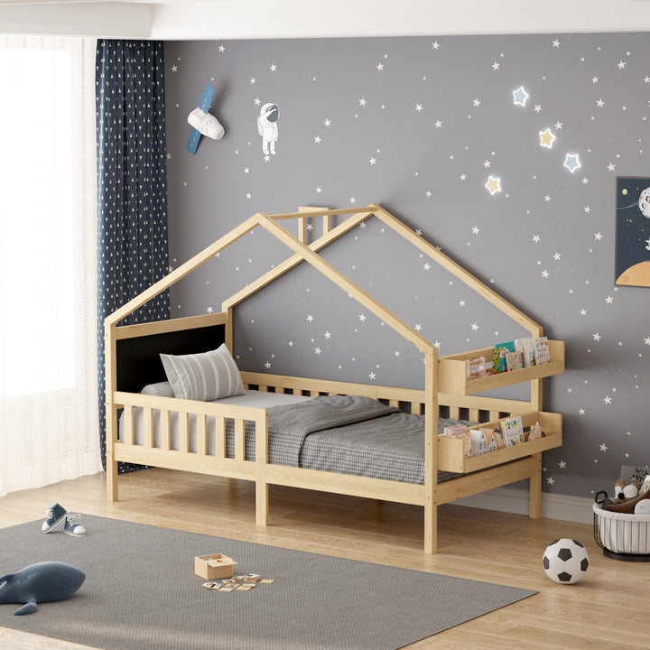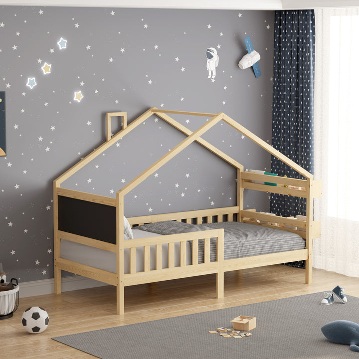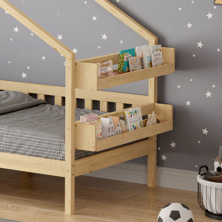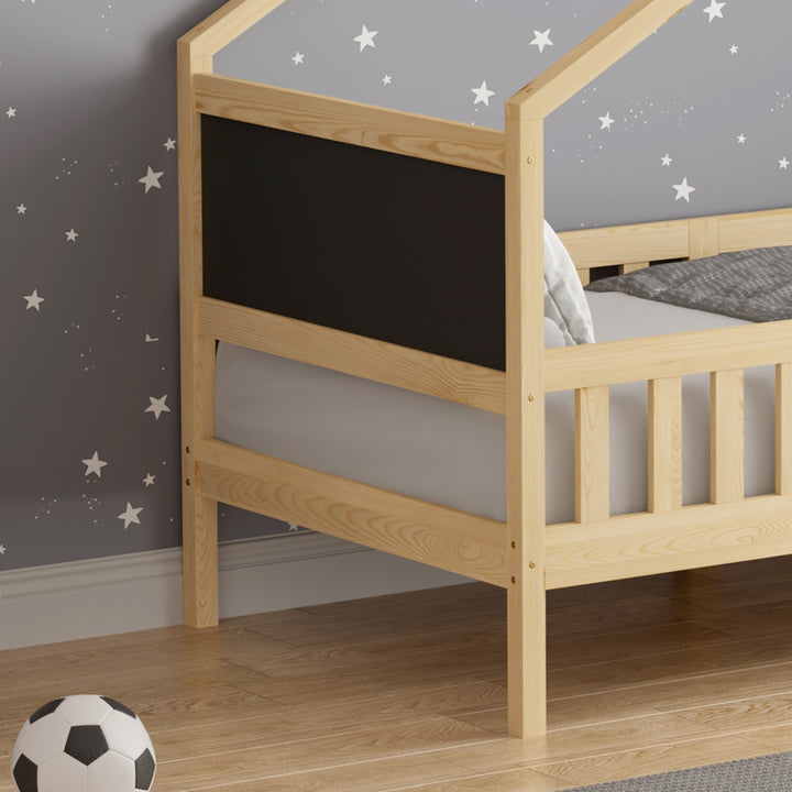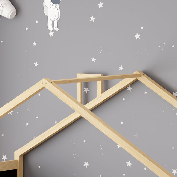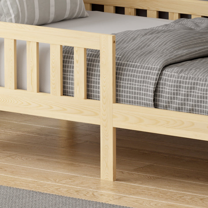 Sa structure en pin massif naturel, au coloris authentique, apporte robustesse et charme à la chambre. Le lit est vendu avec sommier, sans matelas. Dimensions : 96 x 196 x H145 cm.