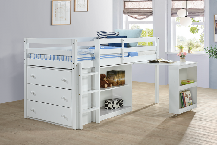 Pratique et chaleureux, ce lit combiné séduit par sa structure en bois d’hévéa, gage de solidité et de durabilité. Il est livré avec son sommier pour une installation immédiate; le matelas n’est pas inclus.