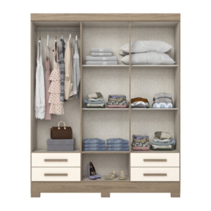 Dans cette armoire Cravo 4 portes avec lit Henn, vous pourrez gagner plus d’espace dans la pièce sans laisser de côté ce dont vous avez besoin pour plus de confort et d’organisation dans la chambre, et tout cela dans un seul meuble.