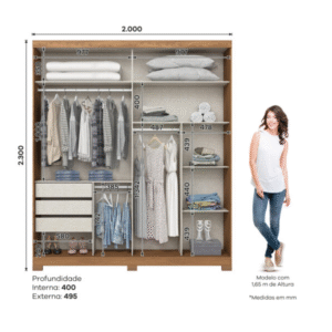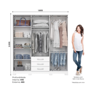 Dans cette armoire Cravo 4 portes avec lit Henn, vous pourrez gagner plus d’espace dans la pièce sans laisser de côté ce dont vous avez besoin pour plus de confort et d’organisation dans la chambre, et tout cela dans un seul meuble.