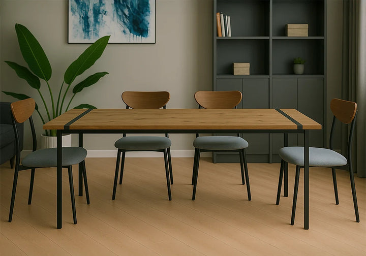 Optez pour ce lot de 6 chaises, idéal pour compléter et moderniser votre espace repas. Leur structure en métal coloris noir assure robustesse et stabilité, tandis que le dossier en MDF imitation bois et l’assise recouverte de tissu microfibre gris conjuguent style et confort. La table n’est pas comprise, mais elle est également disponible séparément. Dimensions d’une chaise : 41 x 43 x H76 cm.