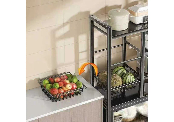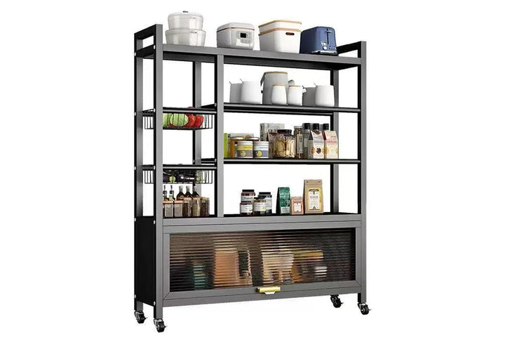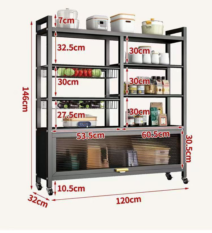 Meuble de Rangement Cuisine sur Roulettes en Métal 1 Porte / YU-10 Meuble de rangement cuisine en métal noir, 1 porte vitrée, design moderne et grande capacité pour appareils et ustensiles. Dimensions : 120x32xH146cm LES + PRODUIT: Structure en métal noir Grande capacité de rangement Style moderne et facile à intégrer