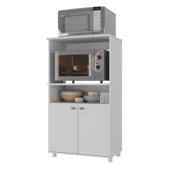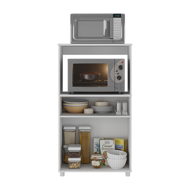 Conçu pour optimiser l’espace, le meuble micro-ondes 6148G.0001 s’intègre facilement dans toutes les cuisines grâce à son format compact (62 x 42 x H113 cm) et sa finition blanche épurée. Sa structure en panneau de particules recouvert de papier blanc offre une esthétique soignée et un entretien simple. Le plateau supérieur accueille aisément votre petit électroménager, tandis que la niche ouverte est spécialement adaptée à votre micro-ondes. Une étagère basse permet de ranger tasses et accessoires à portée de main, et le rangement inférieur fermé par deux portes garde vos ustensiles et provisions bien organisés. Pratique, élégant et simple à placer, c’est l’allié gain de place idéal au quotidien.