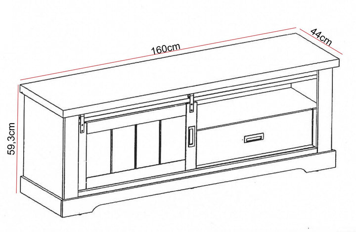 Meuble TV GEORGETOWN Fabriqué en Indonésie Structure MDF de très bonne qualité Hauteur 59,30 cm Profondeur 44,00 cm Largeur 160,00 cm