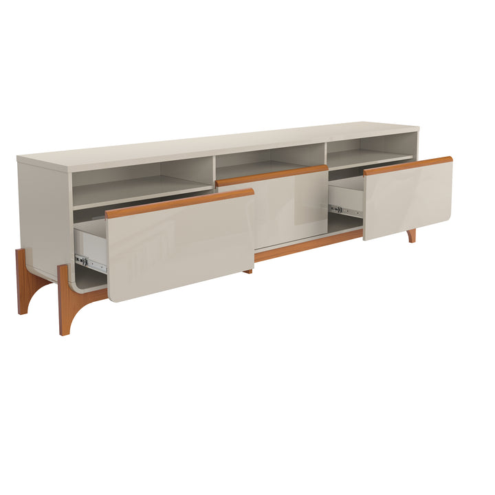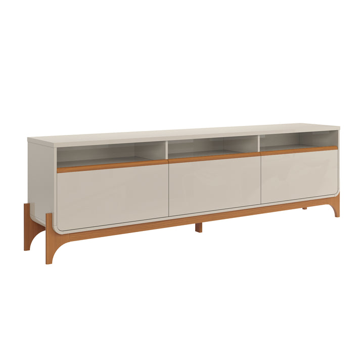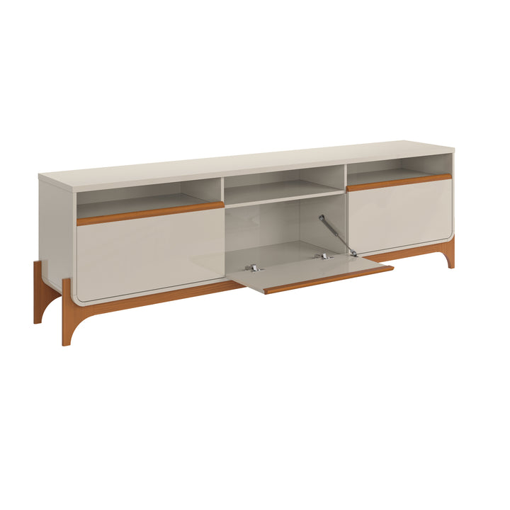 Meuble TV LION / 904125 Pieds en bois Détail courbé en MDF usiné Portes latérales en MDF avec détails arrondis Portes basculantes à piston à gaz Plateau en MDP de 25 mm H: 555mm L: 2130mm P: 385mm