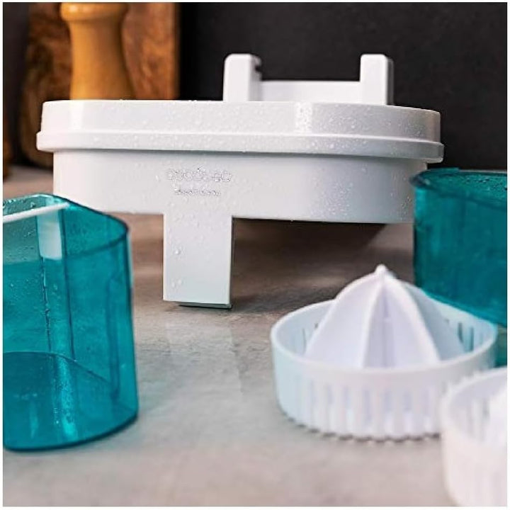 Découvrez le presse-agrumes EssentialVita Twice White 90 W, conçu pour couper et presser en un seul geste. Grâce à son moteur turbo de 90 W et sa double tête à deux cônes, il presse simultanément les deux moitiés d’une orange. Son couvercle intègre un coupe-agrumes qui tranche l’agrume au moment même où il le presse : il suffit d’exercer une simple pression pour obtenir un jus frais, plus vite, plus simplement et plus proprement qu’avec un presse-agrumes traditionnel.
