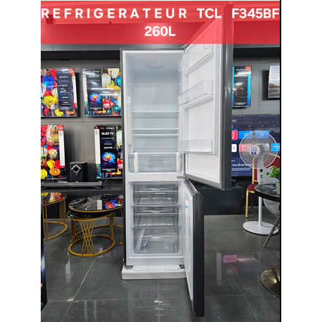 Réfrigérateur combi 260L Net TCL F345BFG Finition Grise 3 clayettes en verre bac à œufs et glaçons