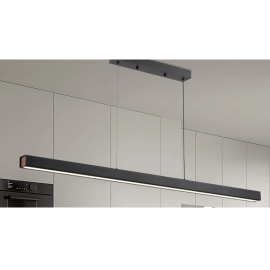 Au format longiligne 1200 x 42 mm, cette suspension LED arbore une silhouette épurée pour un rendu contemporain et discret. Idéale au-dessus d’une table, d’un îlot ou d’un bureau, elle s’intègre facilement à tous les styles d’intérieur et met en valeur vos espaces sans les surcharger visuellement.