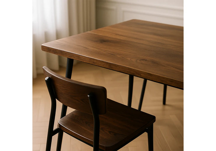 Alliez élégance et robustesse avec cet ensemble au look contemporain : structure en panneaux de particules et MDF coloris chêne, rehaussée par un piétement en métal noir pour une stabilité optimale et une touche moderne.