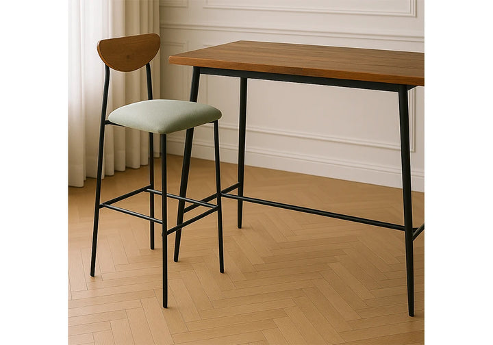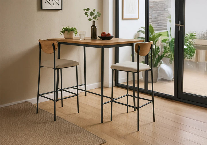 Table bar Pretty / LY-N1243. Une table haute au style contemporain qui marie la chaleur du coloris chêne et l’élégance d’un piétement en métal noir. Sa structure en panneaux de particules et MDF coloris chêne assure solidité et allure, idéale pour créer un espace repas convivial.