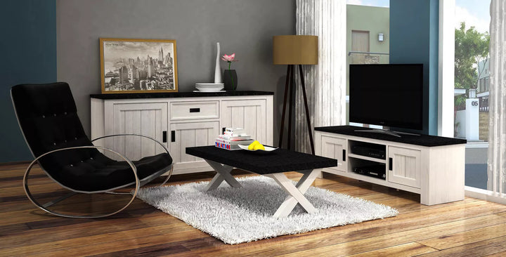 Table basse MICHIGAN MDF et panneaux de particules de première qualité ép. 15 et 18 mm – portes 18 mm – poignées en métal noir