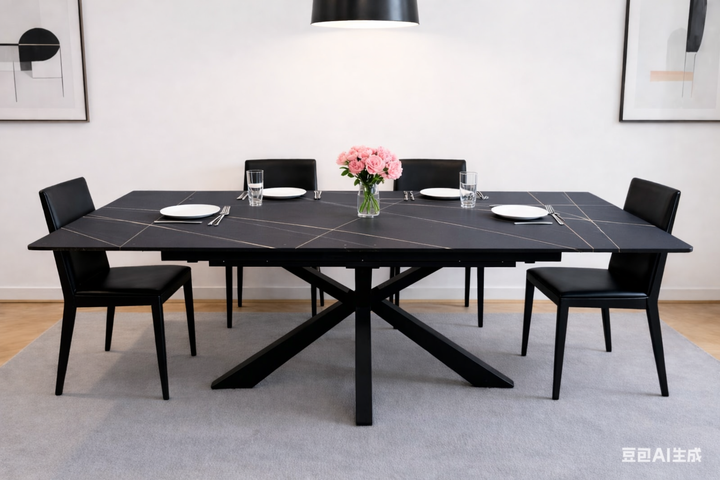 Table céramique extensible / 2001BLACK160 1600 – 2400 x 900 mm Plateau céramique Pied métal