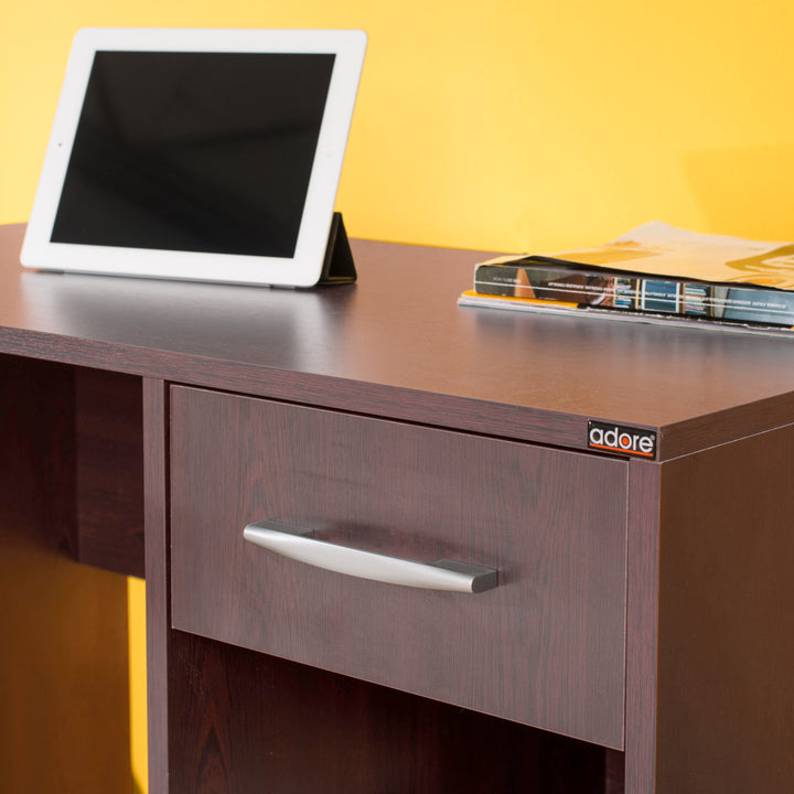 Avec ses dimensions de 90 x 75 x 52 cm, cette table de travail offre un espace de travail spacieux et confortable. Pratique au quotidien, elle dispose d’un tiroir doté d’une poignée en métal chromé et de deux étagères pour organiser facilement vos documents et accessoires. Polyvalente, elle convient aussi bien à la maison qu’au bureau.